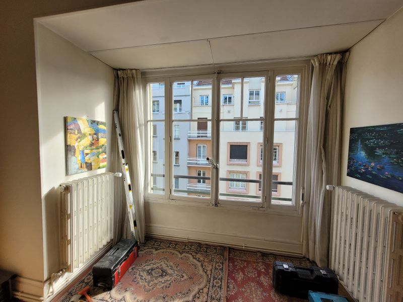 Double vitrage phonique 10/14/4 + petit bois blanc intégré dans le double vitrage afin de respecter l'esthétique de la copropriété.