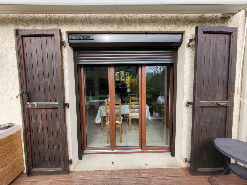 Rénovation de fenêtres et portes fenêtres en PVC KOMMERLING bicolore blanc intérieur/Siena extérieur ainsi que volets roulants motorisation solaire Somfy iO.