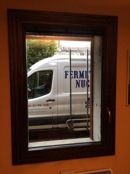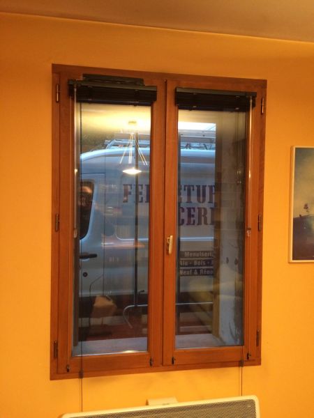 Rénovation d'une maison en Profilé PVC/ALU KOMMERLING Gamme TEXTURAL en coloris Chêne Wengé intérieur/ Alu Gris Anthracite extérieur, double vitrages 6/18/4 avec store vénitien intégré sur vitrage intérieur.