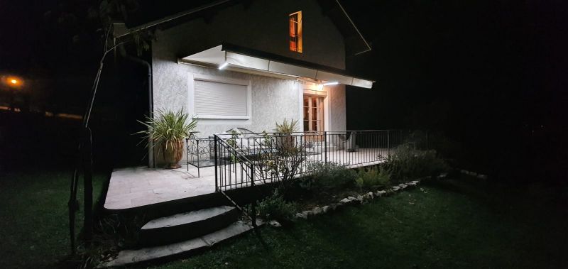 Pose d'un store banne gamme SUNBOX 400 motorisation radio somfy iO avec manœuvre de secour, coffre prestige aluminium pour une protection optimale de la toile DICKSON, 2 bras extensibles, éclairage STARLIGHT par leds intégrés aux bras, capteur au vent Eolis intégré également.