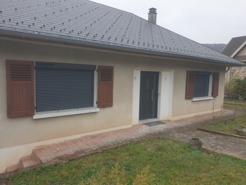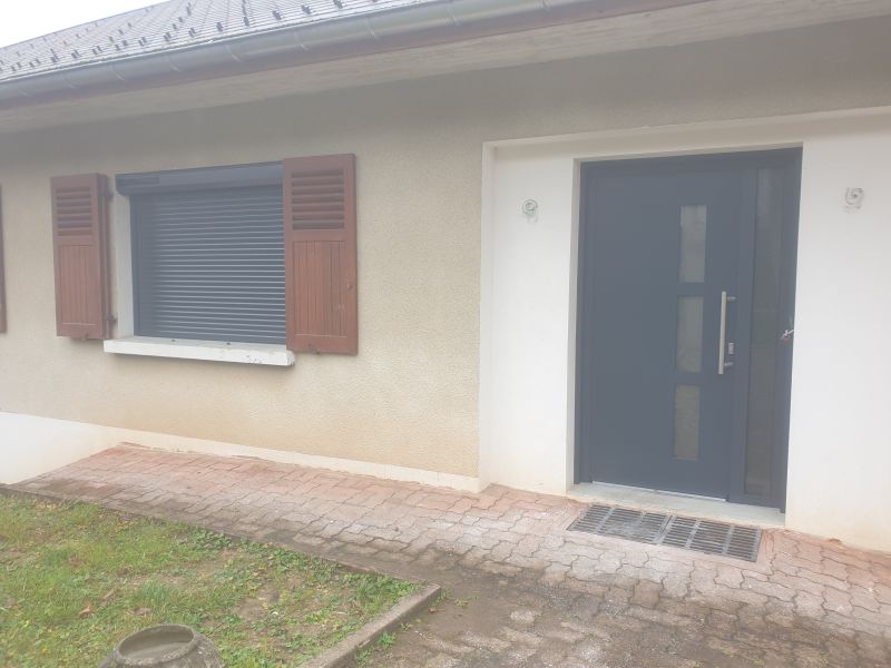 Rénovation d'une maison sur Seyssins, porte d'entrée et châssis coulissants ALUMINIUM marque SCHÜCO, volets roulants solaire Somfy iO coloria ral 7016.