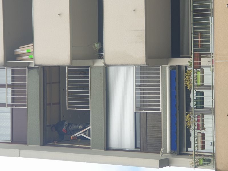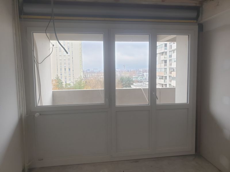 Rénovation d'un appartement au 6ème étages d'ensembles composés de portes fenêtres en PVC KOMMERLING bicolore blanc int/acajou extérieur + volets roulants traditionnels motorisation radio France Fermetures.